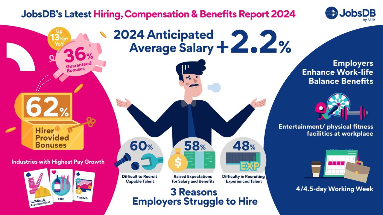 Jobsdb's Hiring, Compensation and Benefits Report 2024: Anticipated 2.2% average salary increase
