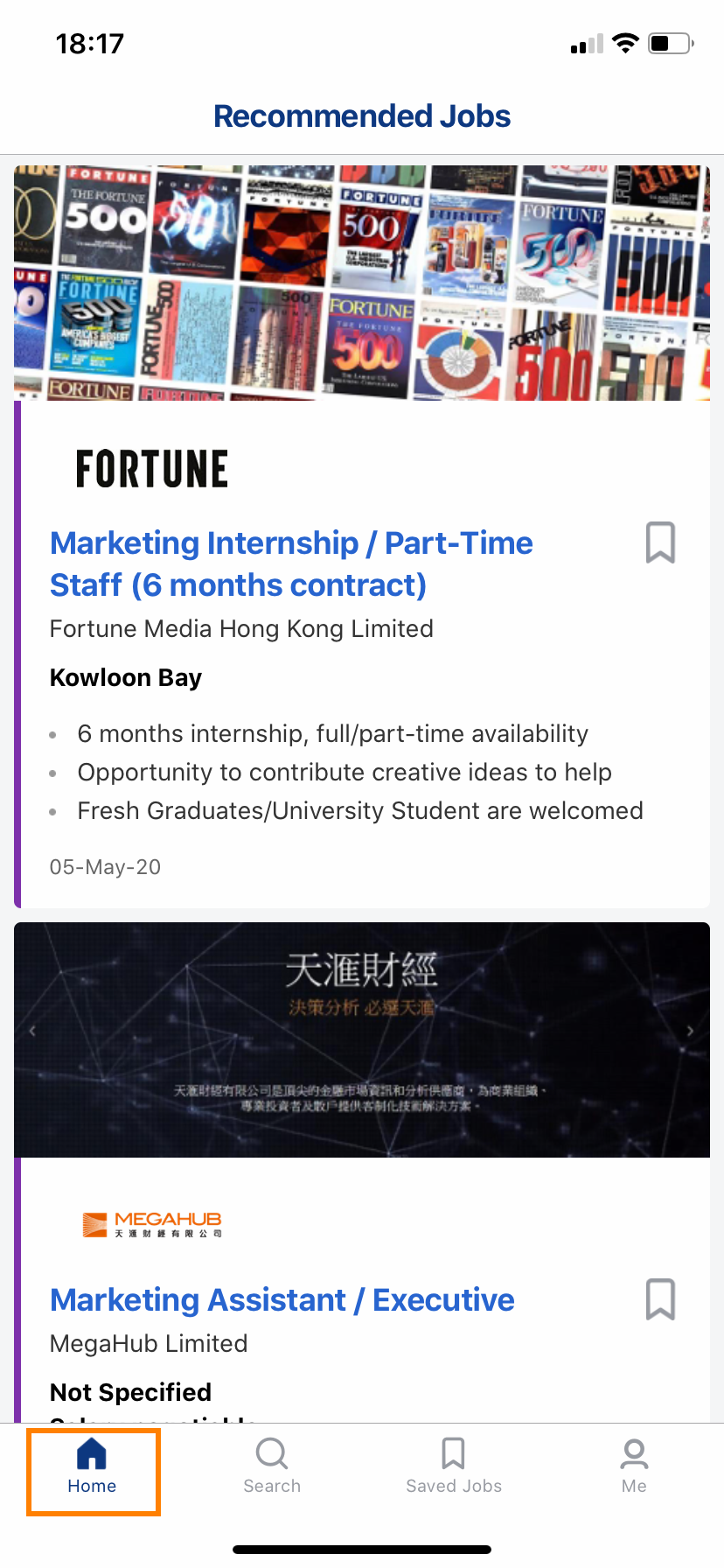 When logged into our desktop version website, you can find ‘recommended jobs’ on the home page.