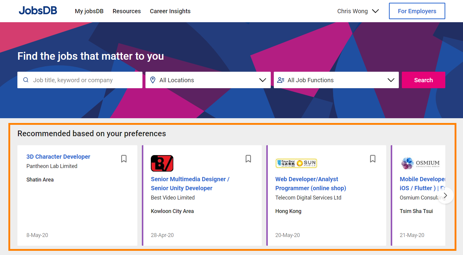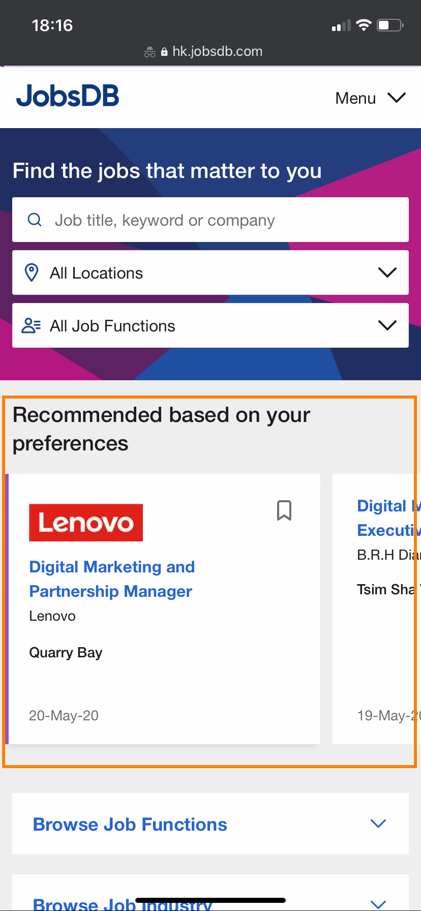 If you log into your Jobsdb account via our mobile version website, you will immediately see the most updated ‘recommended jobs’.