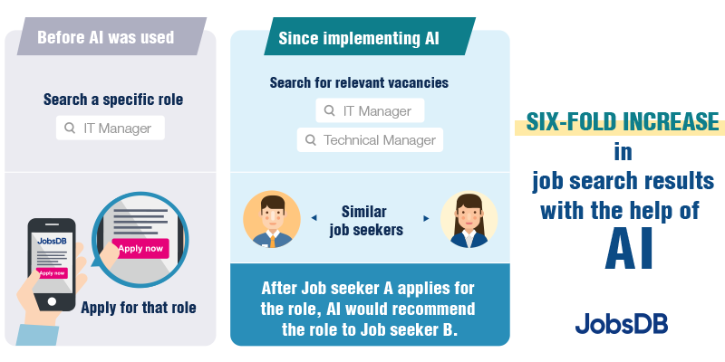 AI analyses and learns behavioural patterns of users / job seekers and applies them on the ‘job recommendation’ function, assisting users to find the right job.