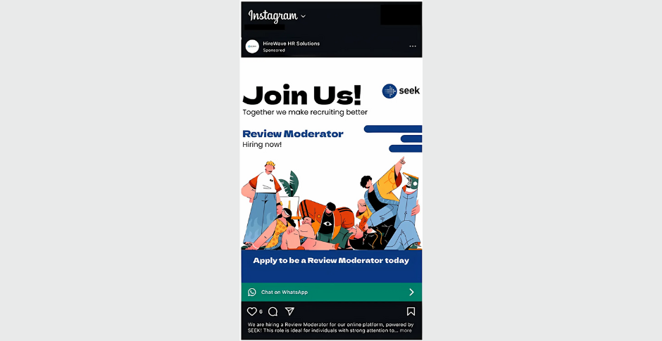 Summary: Scammers impersonate SEEK and post fake ads on Instagram to promote non‑existent jobs.