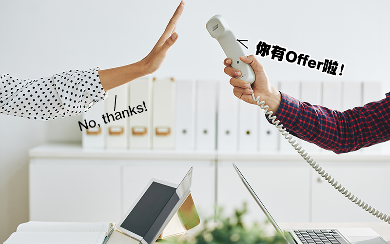 雖然推offer的原因各有不同,但萬變不離其宗:唔滿意。無論是對新公司提出的聘請條件、公司文化、整體感覺……只要不滿意都會成為推offer的原因。無論是人(公司)揀你(求職者),還是你揀人,雙方都是公平的。招聘過程很多時都是雙方的一場角力,合則來,不合則去吧。
