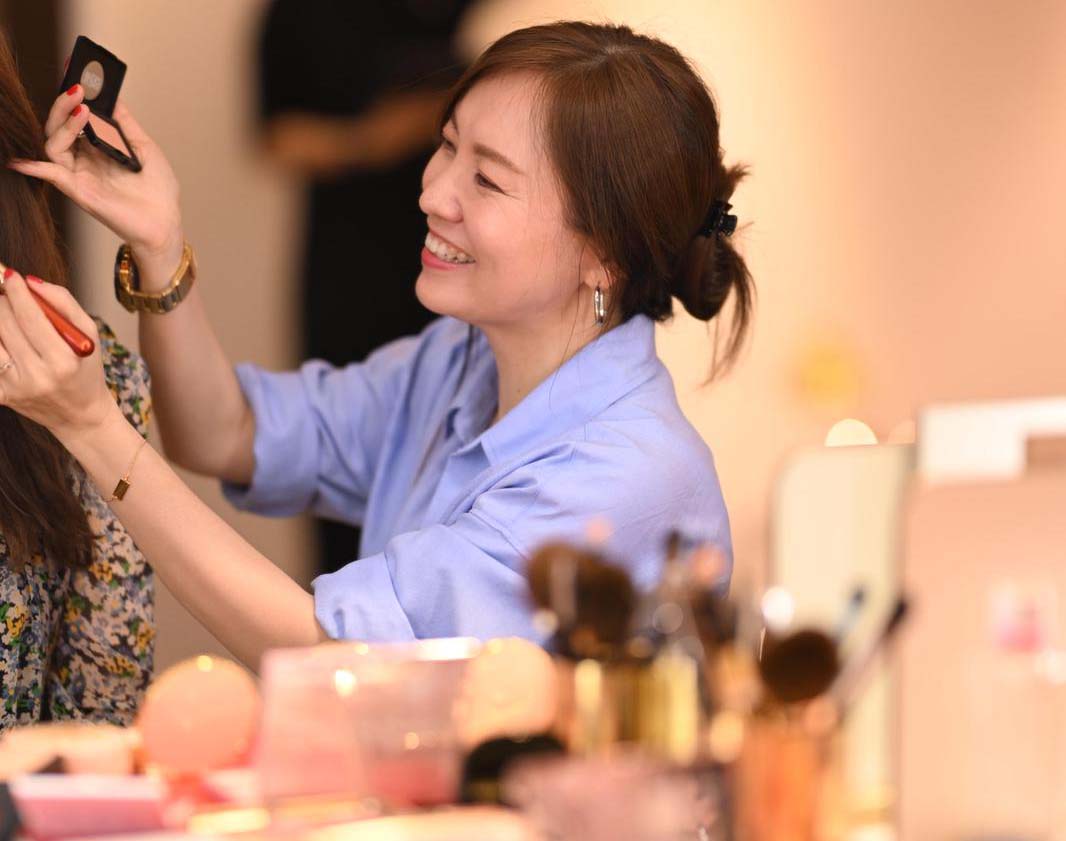 ▲星級化妝師Emma Lee與不少藝人也有合作,例如朱茵、黄貫中、吳鎮宇、黄秋生、苟芸慧等,她認為,要成為出色的專業化妝師,化妝技巧一定是首要。如要保持這種硬實力,便必須勤於練習,每日也要操練,否則,就算你有數以百計的證書旁身,手藝不純熟、不夠靈巧,也難以在講求快靚正的影視化妝界立足。