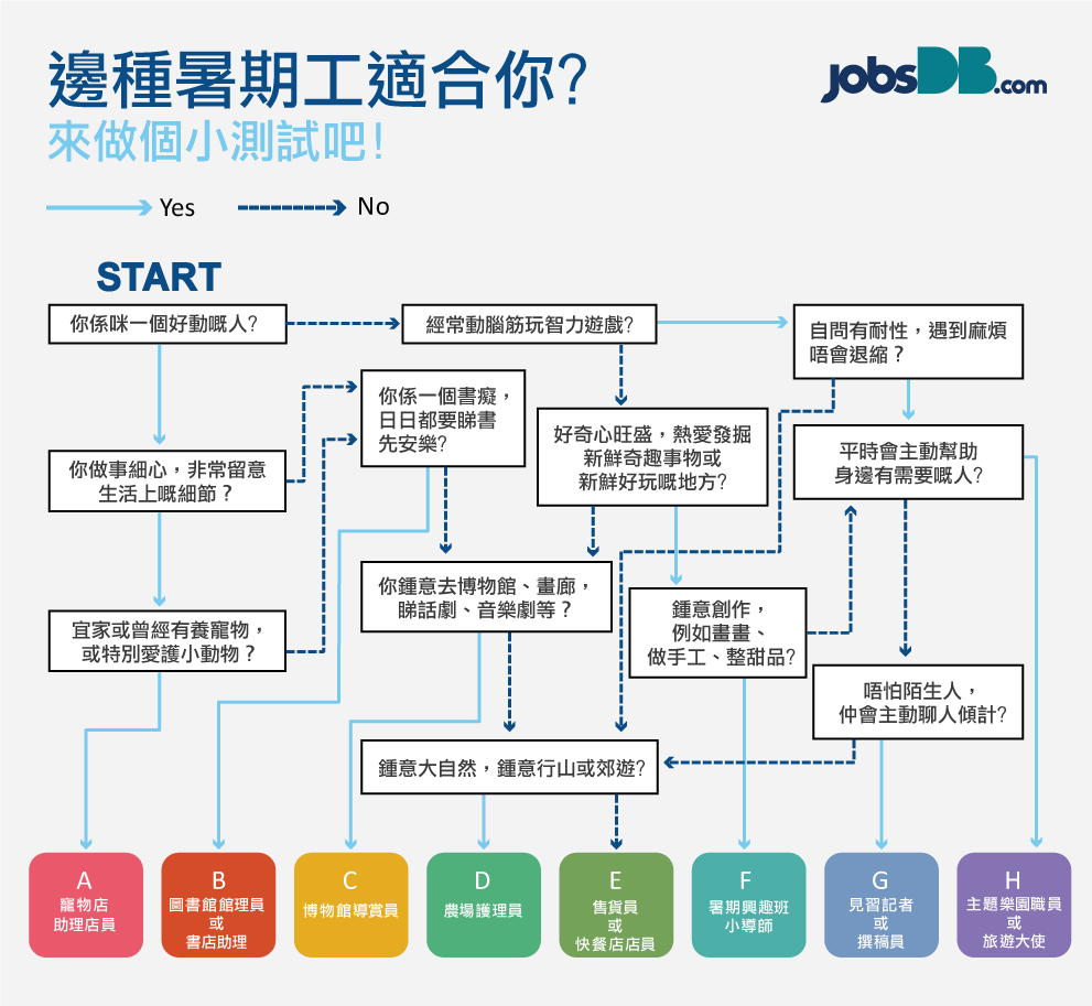 暑假又到喇﹗準備搵暑期工嘅中學生或大學生,或者仲未清楚自己究竟要搵邊類型嘅工作,面對職場上越來越多層出不窮的工種,點揀先至好呢?立刻來做個小測試,看看哪類型的工作最適合你吧﹗