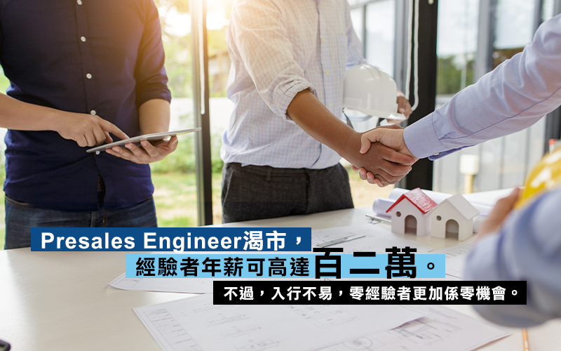 售前工程師Presales Engineer,顧名思義,就是sales加engineer的合體。這個職位嘛,歷史不過二十年。二千年代,IT行業迅速崛起,大小公司對各類IT軟硬件產品需求激增,自然成就sales的搵錢良機,不過sales把口雖叻,IT知識遠遠追不上日新月異的科技發展。於是便出現了Presales Engineer與sales雙劍合璧,sales繼續落足嘴頭,Engineer則從技術層面全力助攻,成功下單後,再分佣金。今時今日,縱雲端技術一日千里,企業對軟硬件需求減少,不過Presales Engineer一樣渴市,經驗者年薪可高達百二萬。話雖如此,不過現職Presales Engineer的Sam說︰「入行不易,零經驗者零機會。」