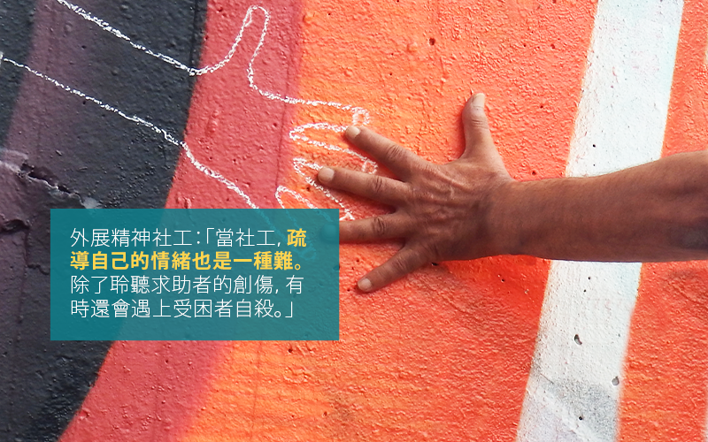 但慶幸,他沒有那樣。只是面對求助者時,有時會有另一種歉疚。他頓了頓,看着雙手,「需求太大,人手只有這些。常常對70、80個個案,有時兩個月也見不到一次,他最近如何、入了院你也不知道。」