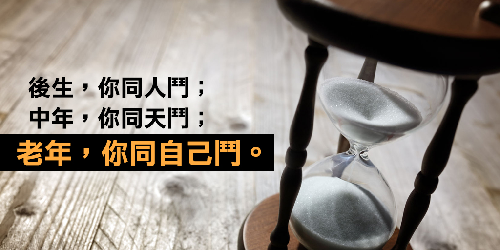後生,你同人鬥;中年,你同天鬥;老年,你同自己鬥。要逃離呢個困境,就要為每個階段定下目標,亦為下個階段做好準備。