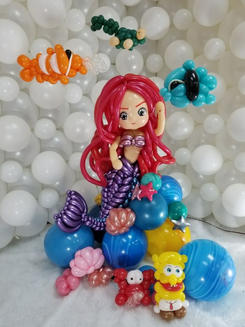 生日派對上的小魚仙氣球造型栩栩如生。