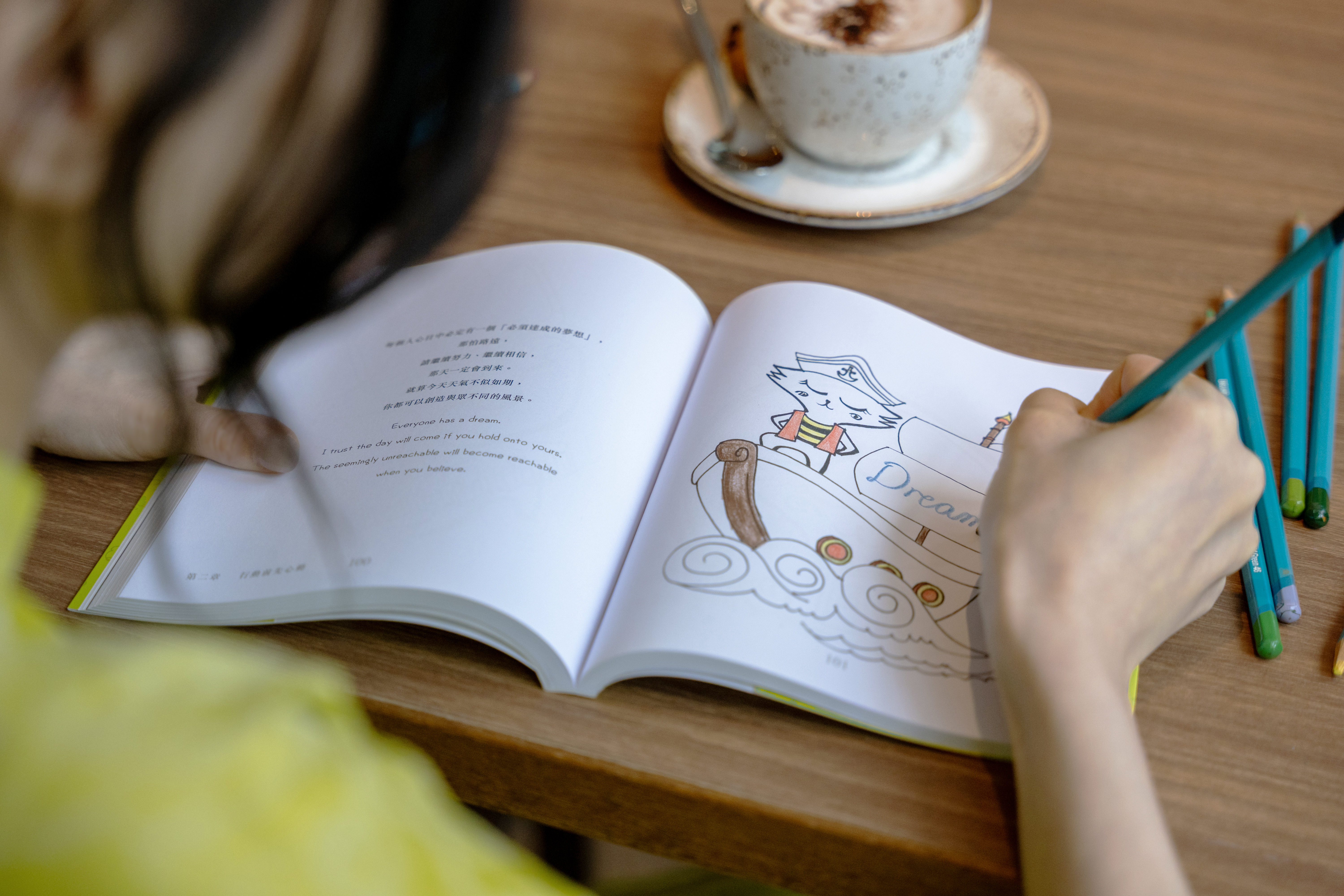 日落星辰,就如同最初環繞她的指示燈,她希望能將那份衝勁帶給他人,所以每當有學校、機構來邀請她分享,她都欣然答應,今年書展更出版《天空教會我的事》填色繪本,「我覺得不止是給小朋友讀的,大人也很適合。」——她見到很多家長會為小朋友計算很多,甚至大人自己也是,卻因而遲遲不去行動,怕轉變會失去原本所擁有,「但他們忘記了這世界每天都在變,如果你不改變,才是可怕的事。」