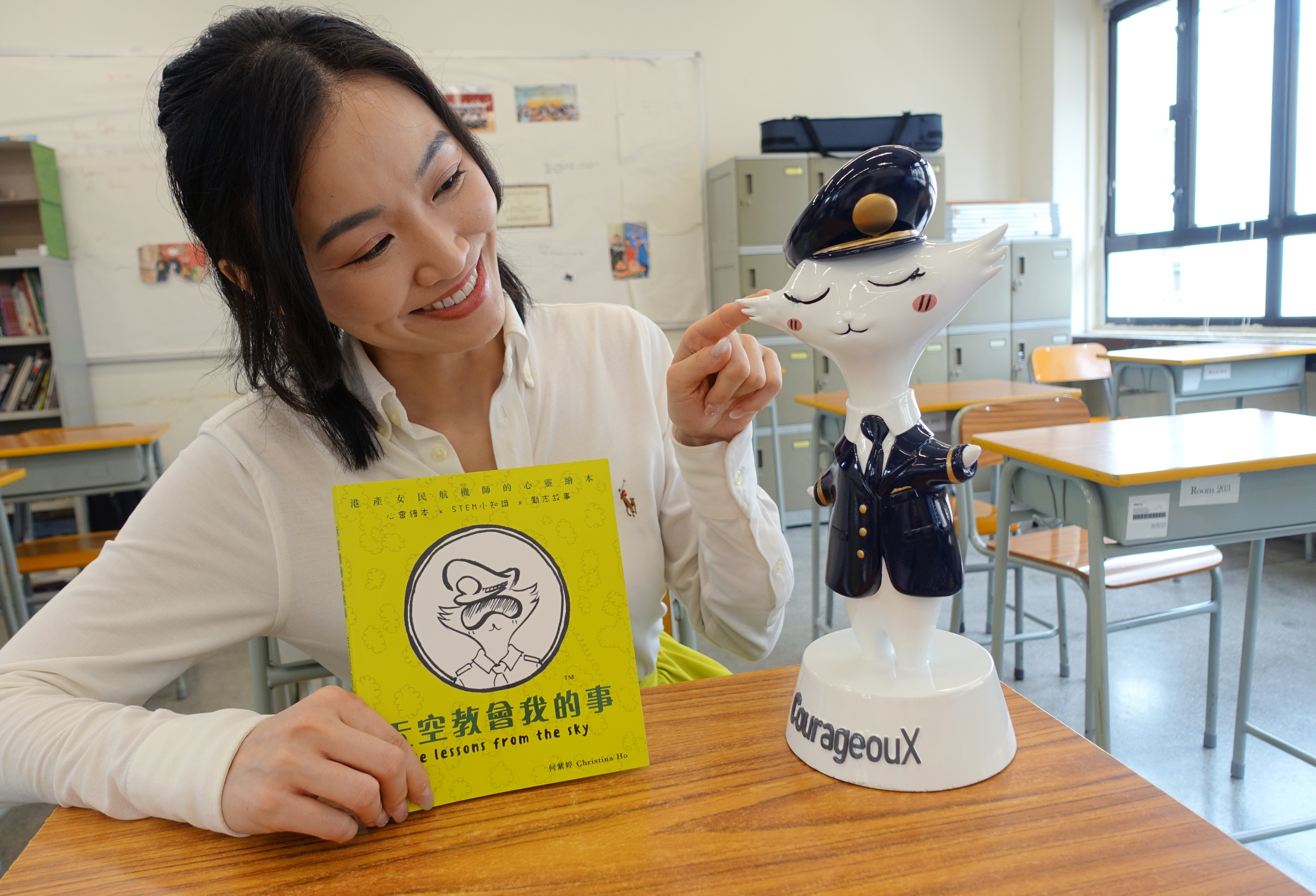 Christine這天穿著一條青檸色的半截長裙,帶着她設計的「機師貓貓 #christtina_meow」figure回到母校, 「我覺得時裝是給人很多自信的東西。 」這也是她選擇入行的原因之一,只是設計師總想要新靈感,做了幾年後,她在街上見到航空公司的招聘海報,想起從前也喜歡到處遊歷,就去試試應聘空姐。對許多人來說轉行是個大改變,她卻說:「我的字典裡沒有轉行這個字,純粹是going for what i want。」
