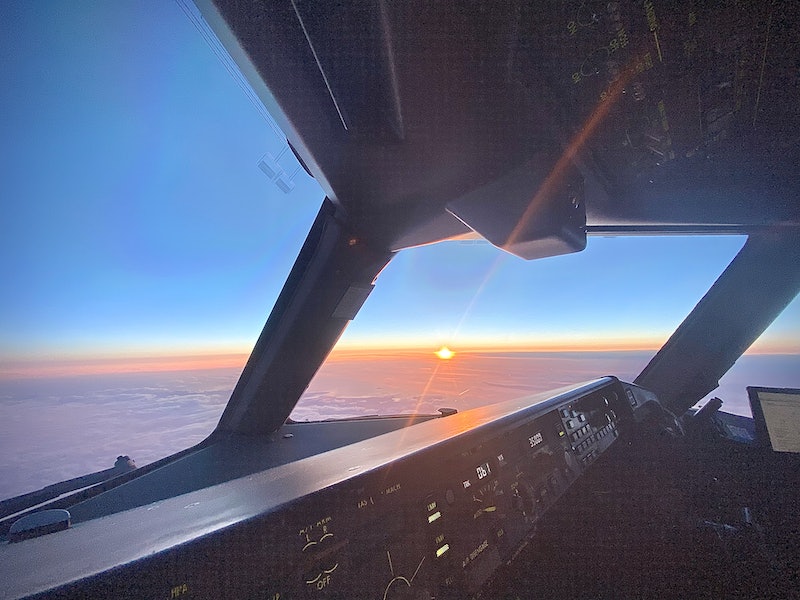 順着這股生命之流,一次航班客滿,她獲安排坐到駕駛艙內的jump seat上,打開機艙門一刻,迎面的是發光的儀表板,機長邊和進出的各人做確認,邊繼續專業地調整設定。當艙門關上,飛機加速,一排排指示燈迎面撲來,她的心跳愈來愈快……看着窗外270度的日落霞彩,「我跟自己說:『我要做機師。』」
