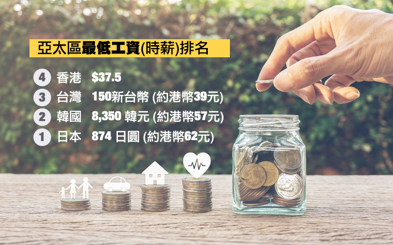 工作環境及文化不同,我們不與歐美國家比較,就亞洲地區的最低工資而言,香港在這方面有沒有落後?