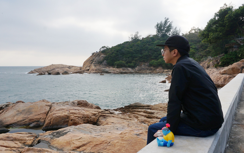 喜歡的事一直擺在心上,機會就可能會出現——在一次project中要想gimmick,他找了間Figure公司合作,之後他說不如試試一起做吧。第一個作品就是Chunk:「我畫的角色都是反映生活或理想生活中的東西。因為我一班朋友都是及時行樂的人。當我有生活壓力時,就在想『人,是應該像他們那樣享受生活,不該營營役役。』」說着他看向不遠處挨着長椅,望着海吹着風的街坊:「即例如他們,其實很簡單——平日就做你想做的事,而禮拜六、日,坐在這裏,休息一下。」