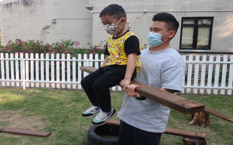 其餘都算順利,而且他的性格原來也有優勢——有他在的地方,小朋友就多了機會突破:「如果他們喜歡挑戰自己,我覺得一試無妨,從旁觀察著,在安全情況下陪他試。」玩的時候也能更盡興,「我體力較充裕,要玩雙腳離地的遊戲時,小朋友都會看向我。」當初擔心小朋友不想親近、不信任他,「但接觸下來,原來都可以幾close。」他不禁笑着說:「有些男孩子甚至會當我是棵矮樹般爬上來。」