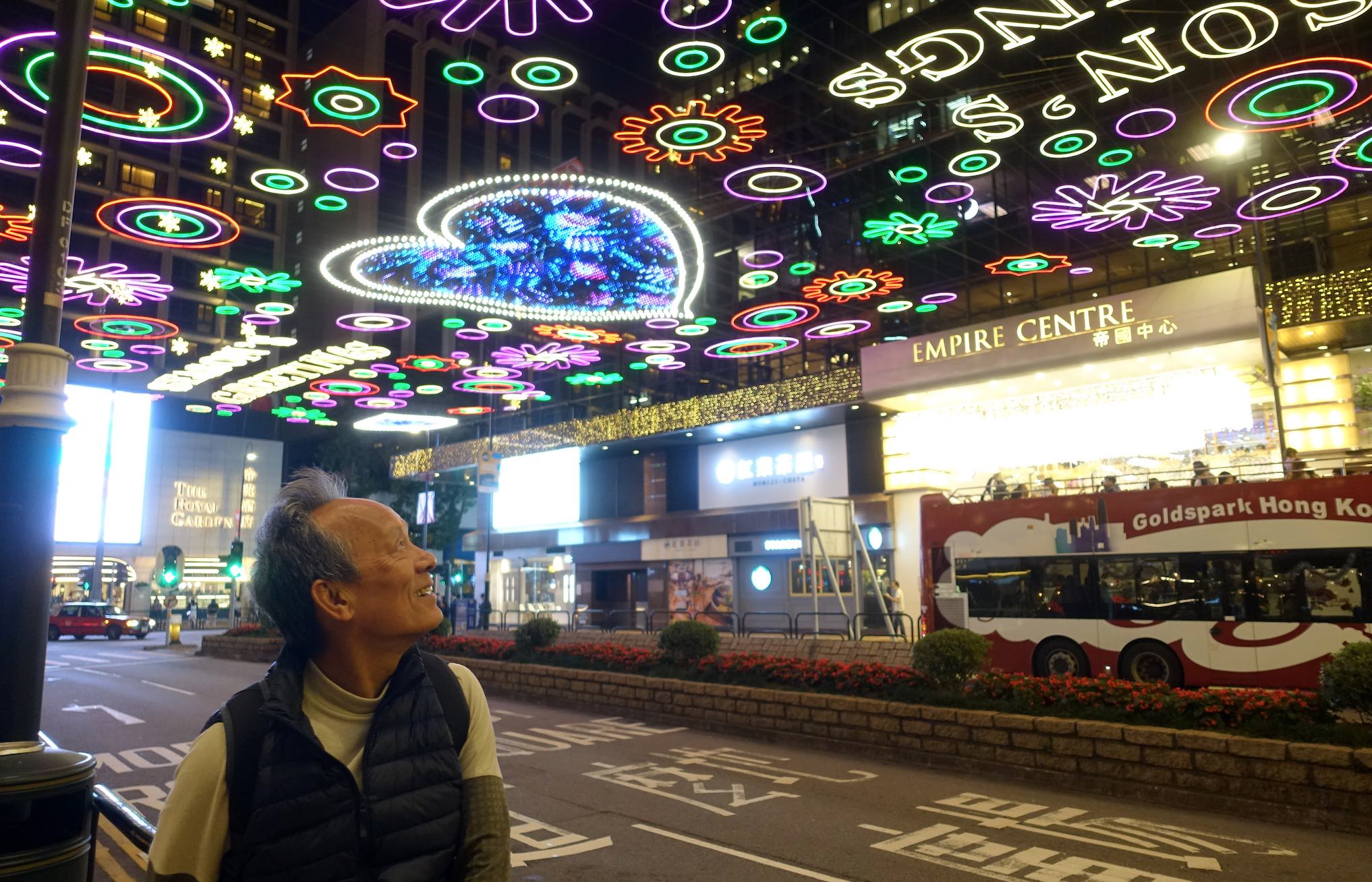 「世界一定是這樣,一雞死一雞鳴,個世界怎樣行便跟他行,我又不能改變世界。隨住聖誕燈少,但LED燈又多,我都做到,因為比人鑽研得多。」他也多了做大廈外牆永久燈,「不做這些燈,就做那些燈,都是圍繞在燈上。」他說得手舞足蹈,豁然地笑:「都一樣是給人欣賞,都一樣是貢獻。」近年經濟下行生意跌,但他卻看得很開,嘻笑着說:「多些來密些手,少些來剛剛夠。」
