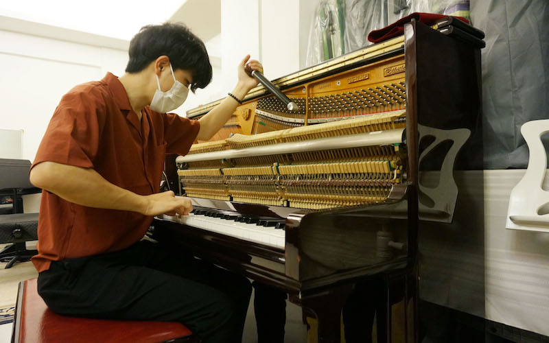 直到疫情爆發,他怕被感染而少了去兼職,收入大減,決定先做一會全職去儲錢。「本身是做售貨員,不知怎的叫了我去看裝修,有天那師傅忽然整隻手都是灰地一下拍了落我的頭上,很侮辱。」這一拍,反而拍醒了他:「辭職時老闆和我說,做人最緊要找到自己價值,那刻我就想:『我的價值是否執頭執尾、sell客呢?如果那一個月拿來調音,我已經幫了2、30部鋼琴起死回生』——我很喜歡救琴的感覺。」
