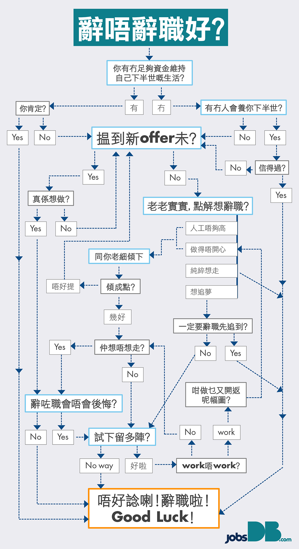 考慮辭唔辭職,總會引發一連串問題。做得唔開心想辭職,辭職又未搵到新offer,搵到又未必啱心水…
