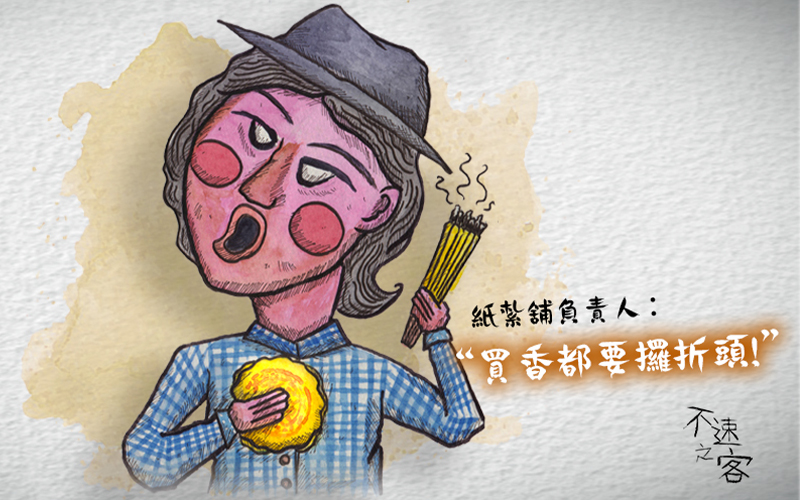 彭太又話,原來有客人買左衣紙祭品返去燒比先人,有啲客真係「收到回音」、又有啲客覺得燒完祭品後變得吉利,開始行好運,咁之後就會一直返轉頭幫襯佢地,久而久之就成為熟客。