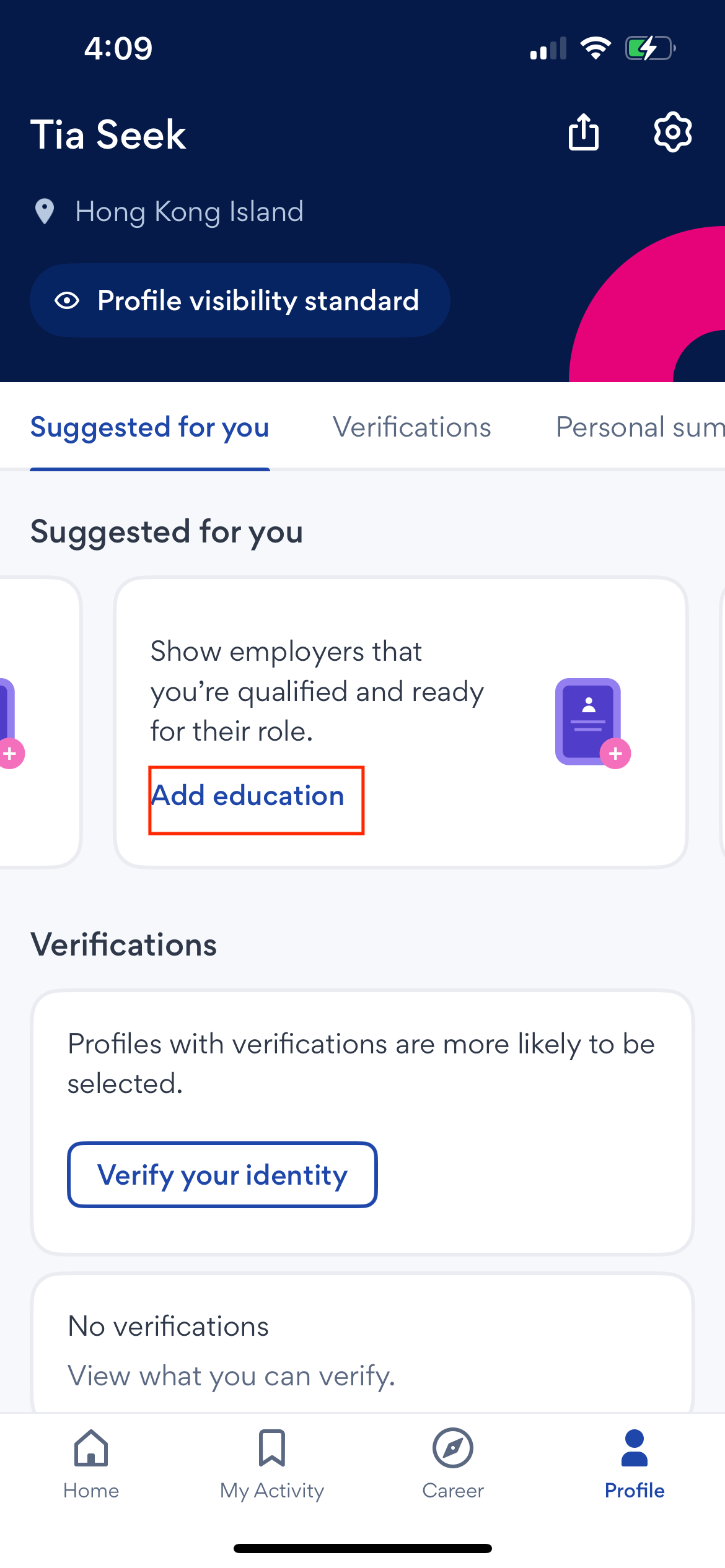 Update完profile,一切準備就緒就可以開波搵工啦﹗但且慢~你尚未完成身份驗證(Verifications)。完成驗證後,你的Profile會更有可信度,更容易被僱主睇到。