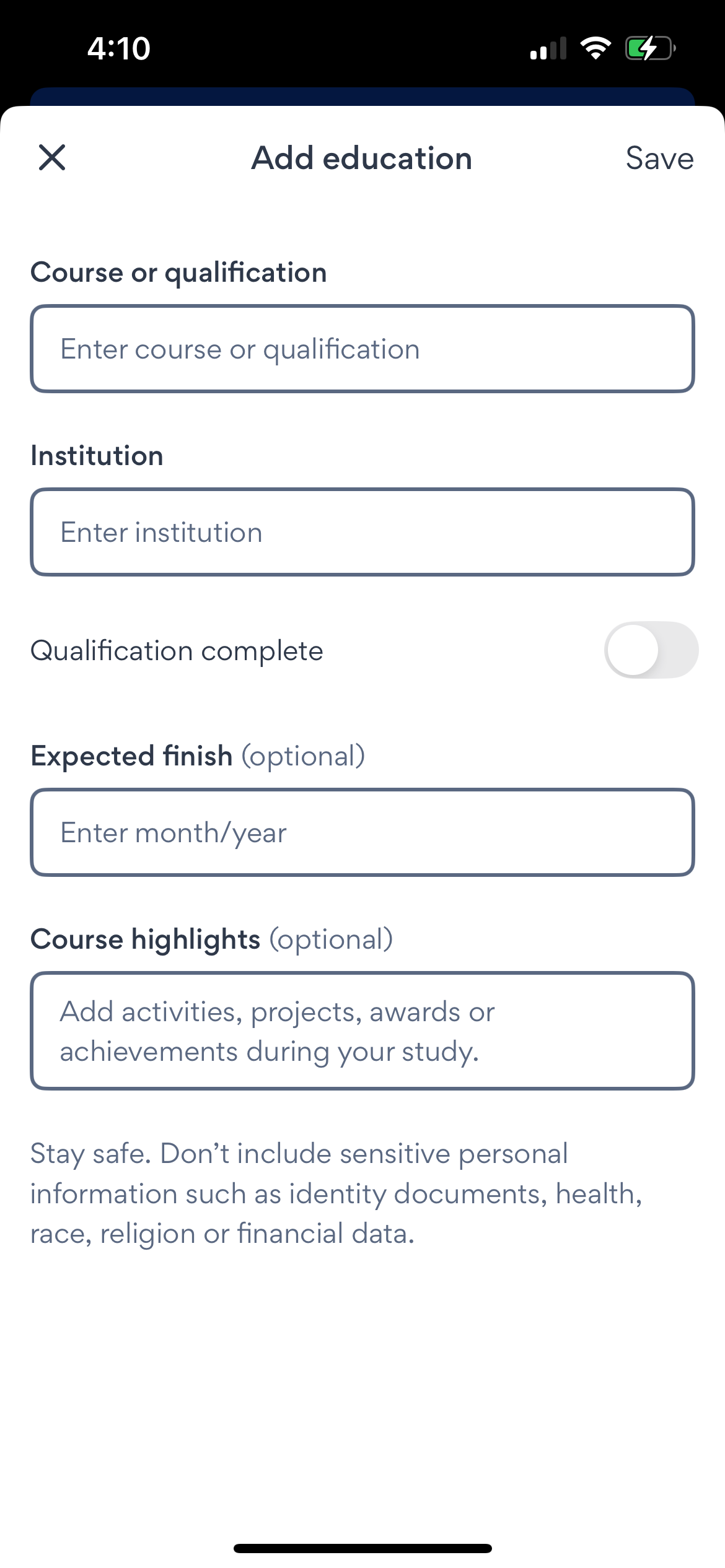 除了教育背景外,其他資歷如牌照或證書亦可加入,按Add Liscense or certification,