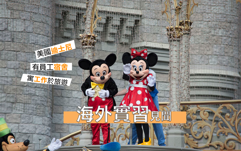 Wing在大學畢業那一年申請了前往美國奧蘭多迪士尼的海外實習,先是在網上遞交一系列申請表;其次是真實的面試,面試前才收到相關的工作範籌,即時選填即時面試;最後是確認名額,自行辦理簽證購買機票,住宿有員工宿舍。工作範籌有3方面:Food & Beverages、Merchandising、Cluture 。當然紙上只是談兵,實際工作內容也是進入工作地方後才知道!Wing感嘆:「到達迪士尼後很快樂,員工宿舍是一橦House,2人1間房,我的室友是墨西哥人,屋中一切都已并然有條。」