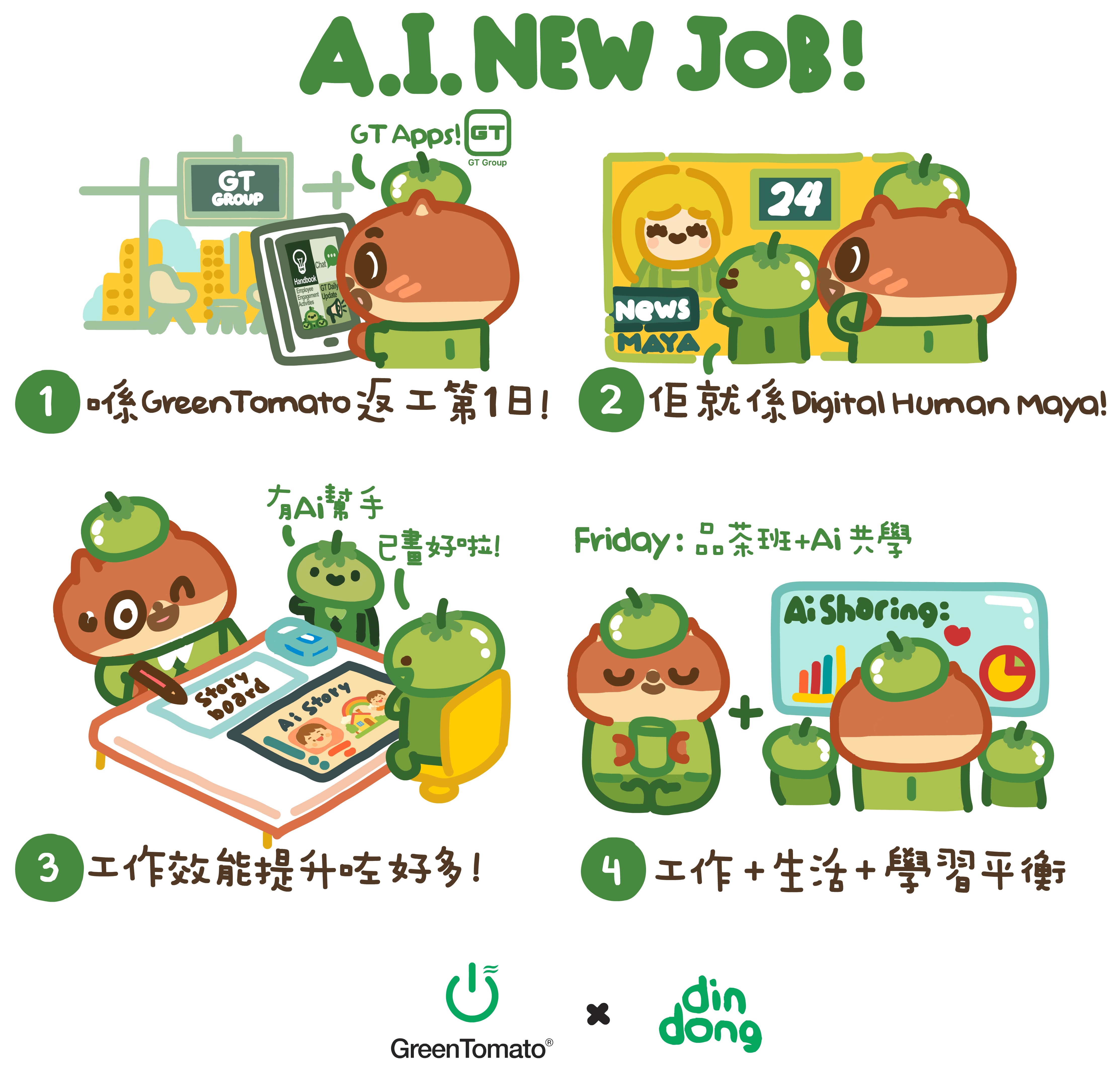 GreenTomato憑藉自家研發的創新AI方案,成功將科技與人文融合,推動內部數碼化轉型,榮獲 Jobsdb HR Awards 2024-25「HR Digitalization Award」,成為業界以AI實踐「以人為本」理念的標竿。為讓更多人了解AI如何在企業內部落地,GreenTomato更聯乘漫畫家 「癲噹」,以四格漫畫呈現AI如何走進員工日常,讓科技故事更貼近人心。