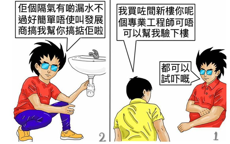 漏水係令小業主最頭痛又最常見的問題,裏面又有分來水、去水、防水、窗同外牆出問題。來水出大問題正常就盲毛都見到(爆水喉),去水同防水出大問題就多數係下面個業主話你知。窗同外牆都可以現場細心啲去做檢查,不過都唔夠打風之後睇咁準。