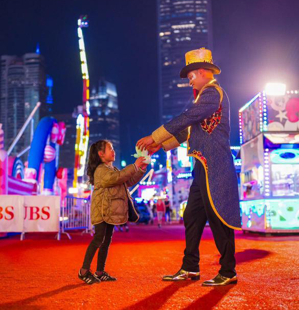 同事覺得他鬼馬的性格很適合去主題樂園扮鬼,「我也很想啊!」就真的去了試,意外地做回小時候最想做的事。到現在做表演已是第十年,他常常到處去扭氣球、演即興小劇場、做司儀等,去年萬聖節更做到夢寐以求的小丑角色,「很開心!我眼閉的了。」