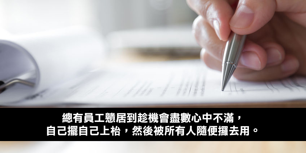 不過總有員工戇居到以為趁機會盡數心中種種不滿,大吐苦水冤屈抑鬱,不管投訴、數臭的是公司、老闆、上司、同事或下屬,都是極其幼稚的行為。有什麼蠢得過自己擺自己上枱,然後被所有人隨便攞去用?結果所講的說話全部被HR記錄在案,成為老闆或者仇家對頭人他日利用來攻擊、秋後算帳的籌碼。