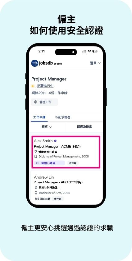 超過50%的工作申請已經核實,幫助求職者建立可靠的聯繫,同時令僱主更有信心作出聘請決定